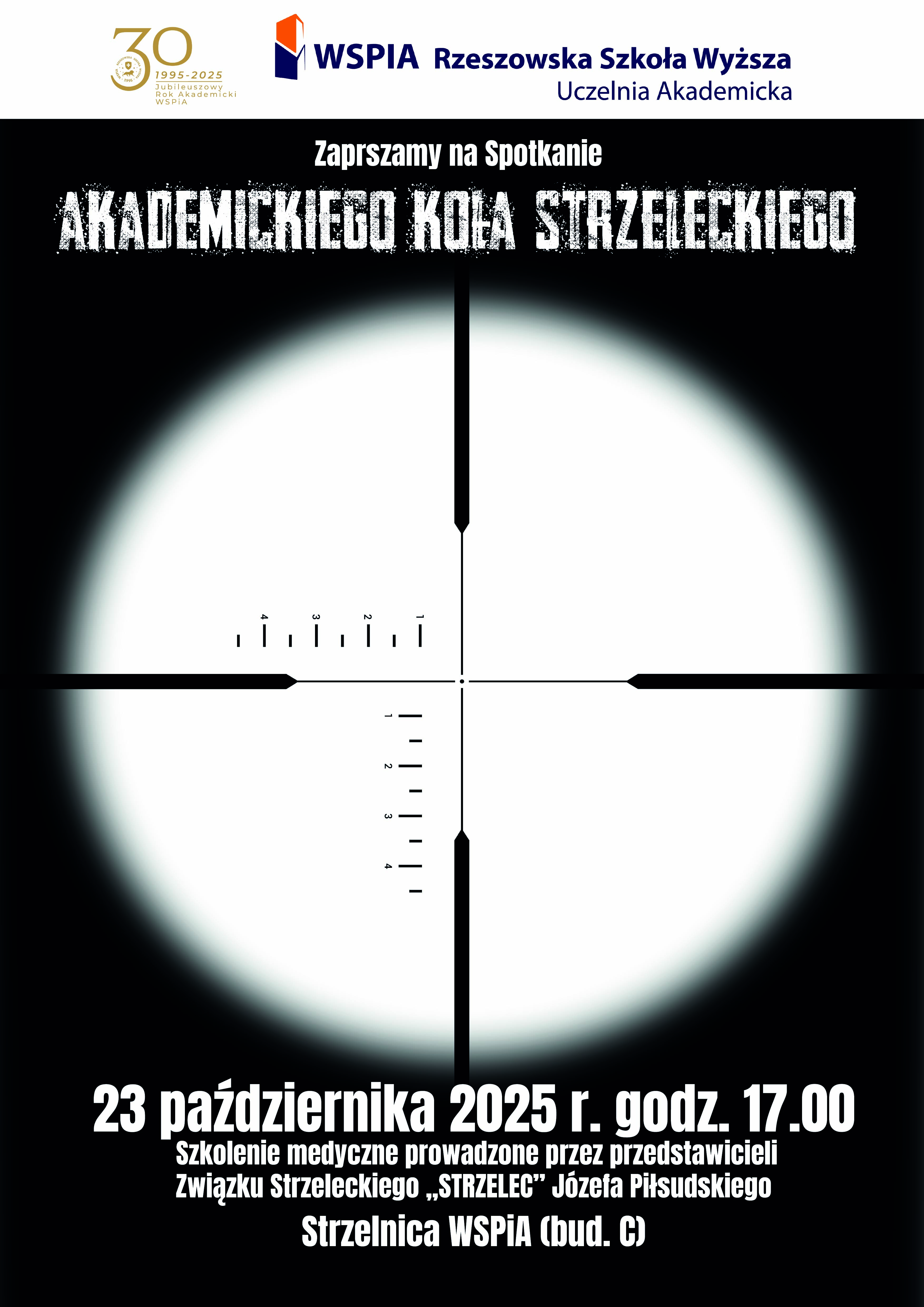 - W dniu 23 października br. zapraszamy na Spotkanie Akademickiego Koła Stzeleckiego, które odbędzie się o godzinie 17:00 na Strzelnicy WSPiA.