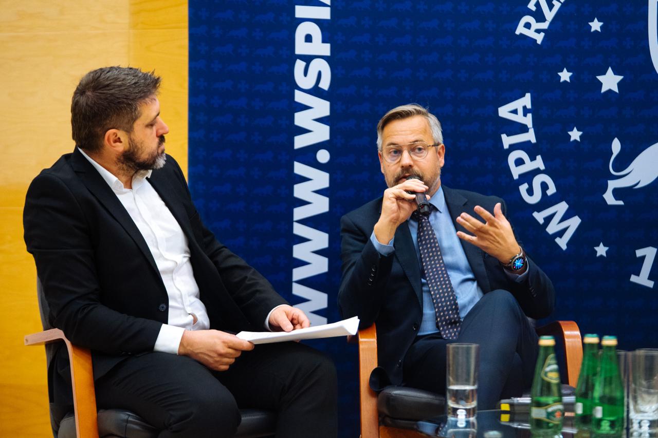 Jak rosyjska propaganda wpływa na opinię publiczną w Polsce i w Europie? W jaki sposób dezinformacja stała się jednym z najgroźniejszych narzędzi polityki Kremla? O tych kwestiach dyskutowali uczestnicy debaty pt. „Dezinformacja jako rosyjska broń”, która odbyła się 6 października 2025 r. w WSPiA Rzeszowskiej Szkole Wyższej. Wydarzenie zorganizowano we współpracy z Regionalnym Ośrodkiem Debaty Międzynarodowej w Rzeszowie (RODM Podkarpacie).