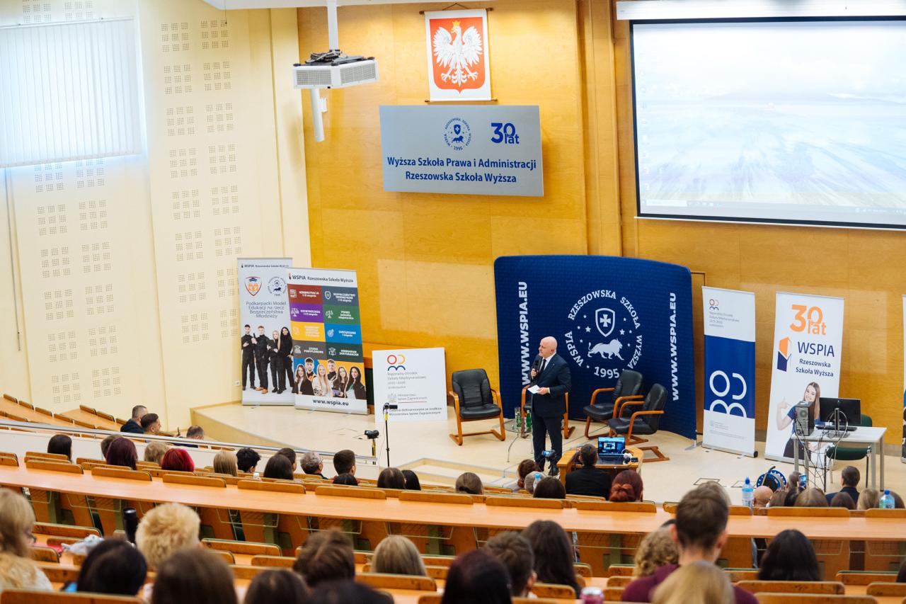 Z perspektywy naukowej zjawisko dezinformacji przedstawił dr Grzegorz Krzeszowski, wykładowca WSPiA. Wskazał, że analiza przekazów medialnych oraz sposobów, w jaki propaganda oddziałuje na emocje odbiorców, powinna być dziś elementem edukacji obywatelskiej i prawnej. – Przeciwdziałanie dezinformacji wymaga wiedzy, ale także krytycznego myślenia i odpowiedzialności za słowo – zaznaczył dr Grzegorz Krzeszowski.