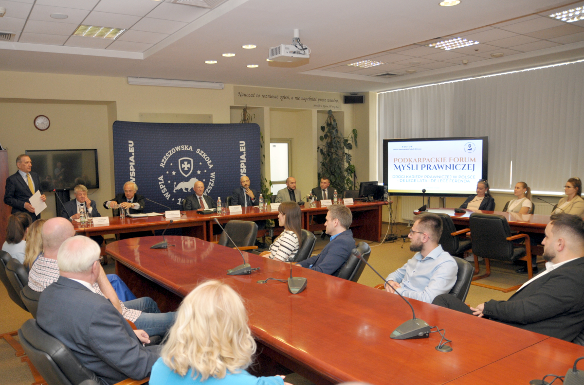 Współczesny model kształcenia i selekcji kandydatów do zawodów prawniczych w Polsce wymaga rewizji, której celem powinno być dostosowanie procedur aplikacyjnych i przebiegu aplikacji do potrzeb nowych pokoleń adeptów prawa. Takie stanowisko wybrzmiało podczas ostatniego w tym roku akademickim posiedzenia Podkarpackiego Forum Myśli Prawniczej, zorganizowanego przez WSPiA Rzeszowską Szkołę Wyższą. Tematem przewodnim spotkania były ścieżki kariery prawniczej w Polsce w ujęciu de lege lata i de lege ferenda.