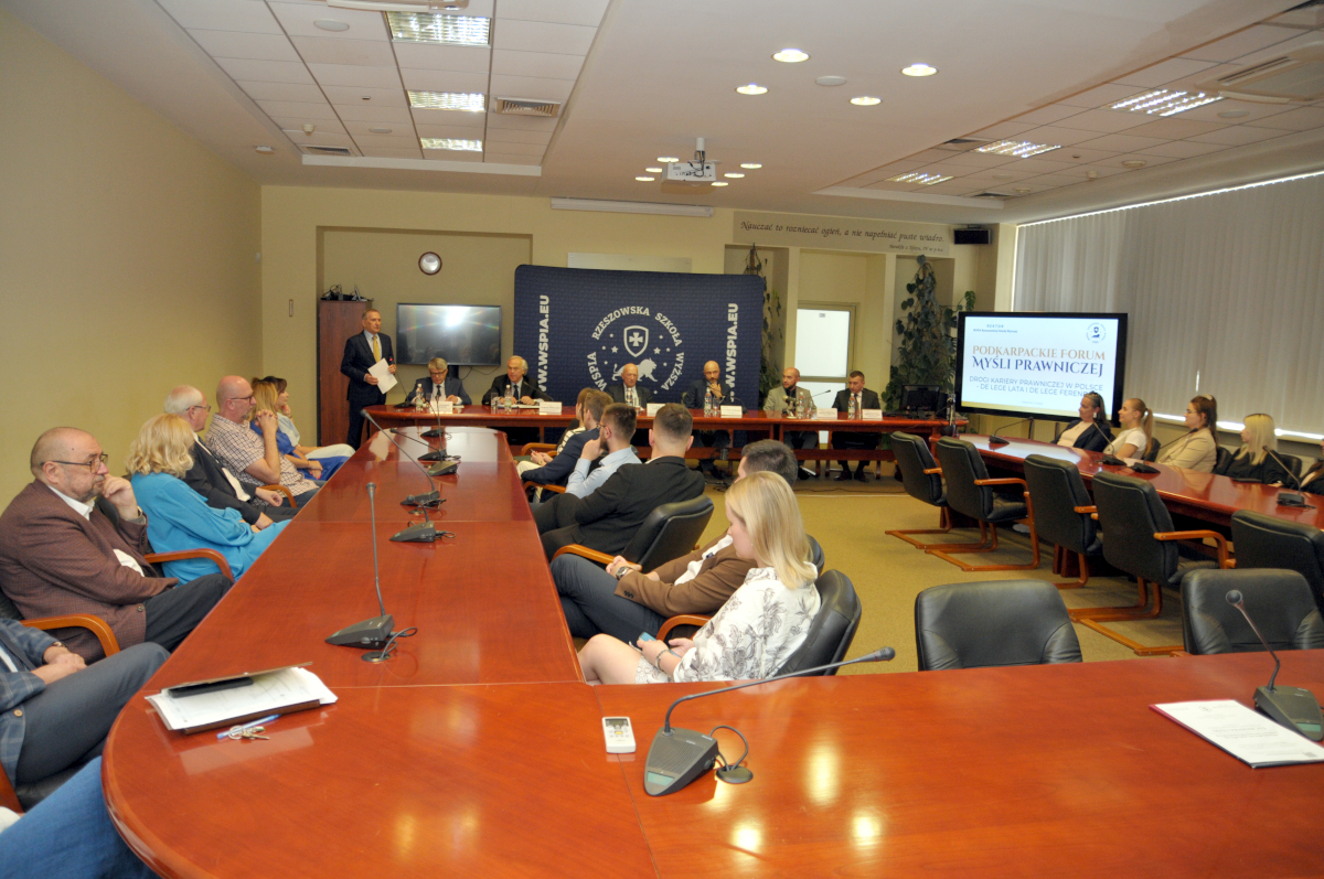 Podkarpackie Forum Myśli Prawniczej to inicjatywa WSPiA Rzeszowskiej Szkoły Wyższej, będąca odpowiedzią na potrzeby środowiska prawniczego Podkarpacia. Stanowi przestrzeń do wymiany poglądów i analizy najważniejszych zagadnień dotyczących stanowienia oraz stosowania prawa. Dzięki współpracy Uczelni z wybitnymi ekspertami, Forum przyczynia się do kształtowania debaty publicznej i poszukiwania najlepszych rozwiązań legislacyjnych.