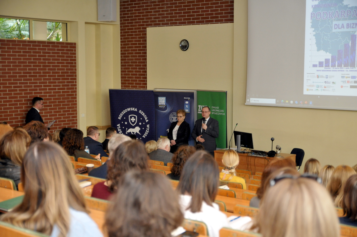 Blisko 300 osób pracodawców, pracowników działów kadr, księgowości i przedsiębiorców wzięło udział w ogólnopolskiej konferencji „Podkarpacie dla Biznesu”. Wydarzenie, które odbyło się 10 marca 2025 r. w WSPiA Rzeszowskiej Szkole Wyższej w Rzeszowie, zorganizował Zakład Ubezpieczeń Społecznych.