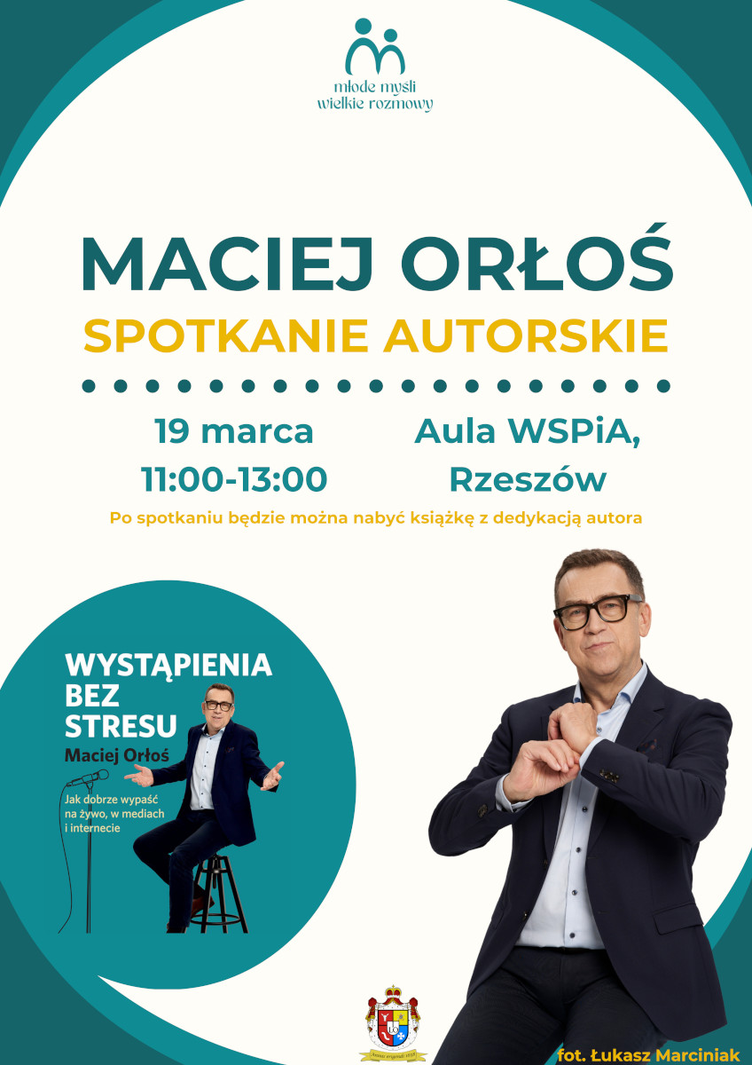 Projekt „Młode Myśli – Wielkie Rozmowy” powstał z inicjatywy uczennic I Liceum Ogólnokształcącego w Rzeszowie. Jego celem jest inspirowanie i rozwijanie młodzieży poprzez organizację spotkań z wyjątkowymi osobami, które mają coś ważnego do przekazania. Tym razem gościem uczennic I LO będzie Maciej Orłoś, znany dziennikarz i ekspert od wystąpień publicznych. Spotkanie odbędzie się w środę 19 marca 2025 r. w Auli WSPiA Rzeszowskiej Szkoły Wyższej.