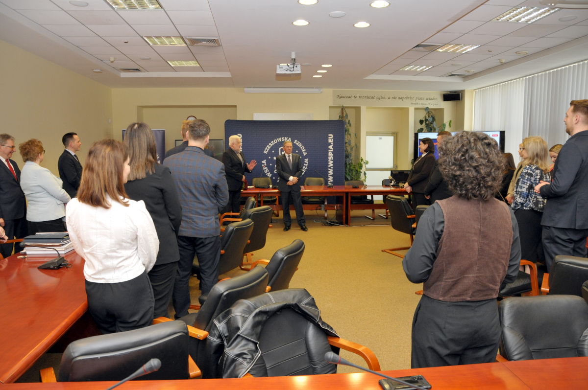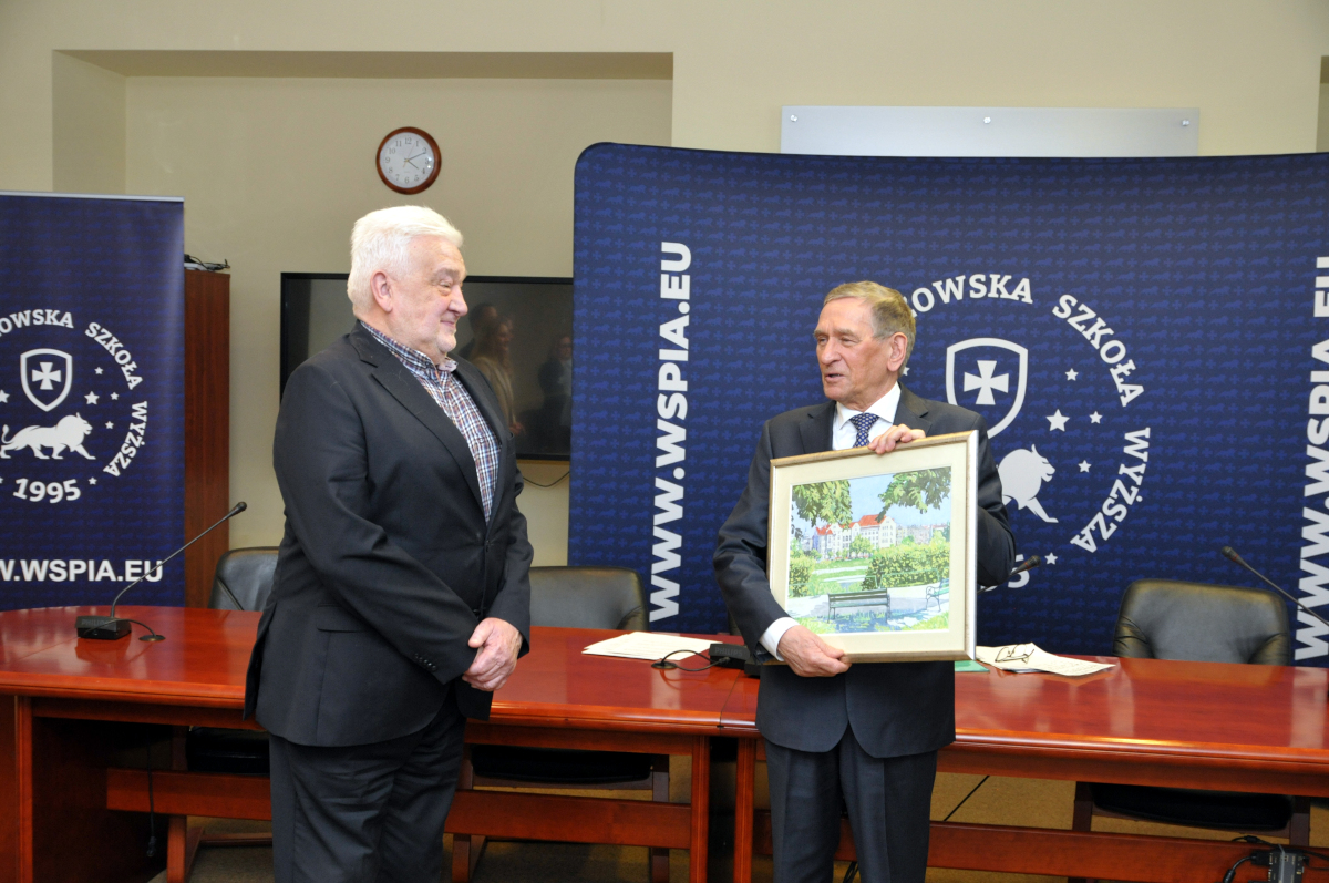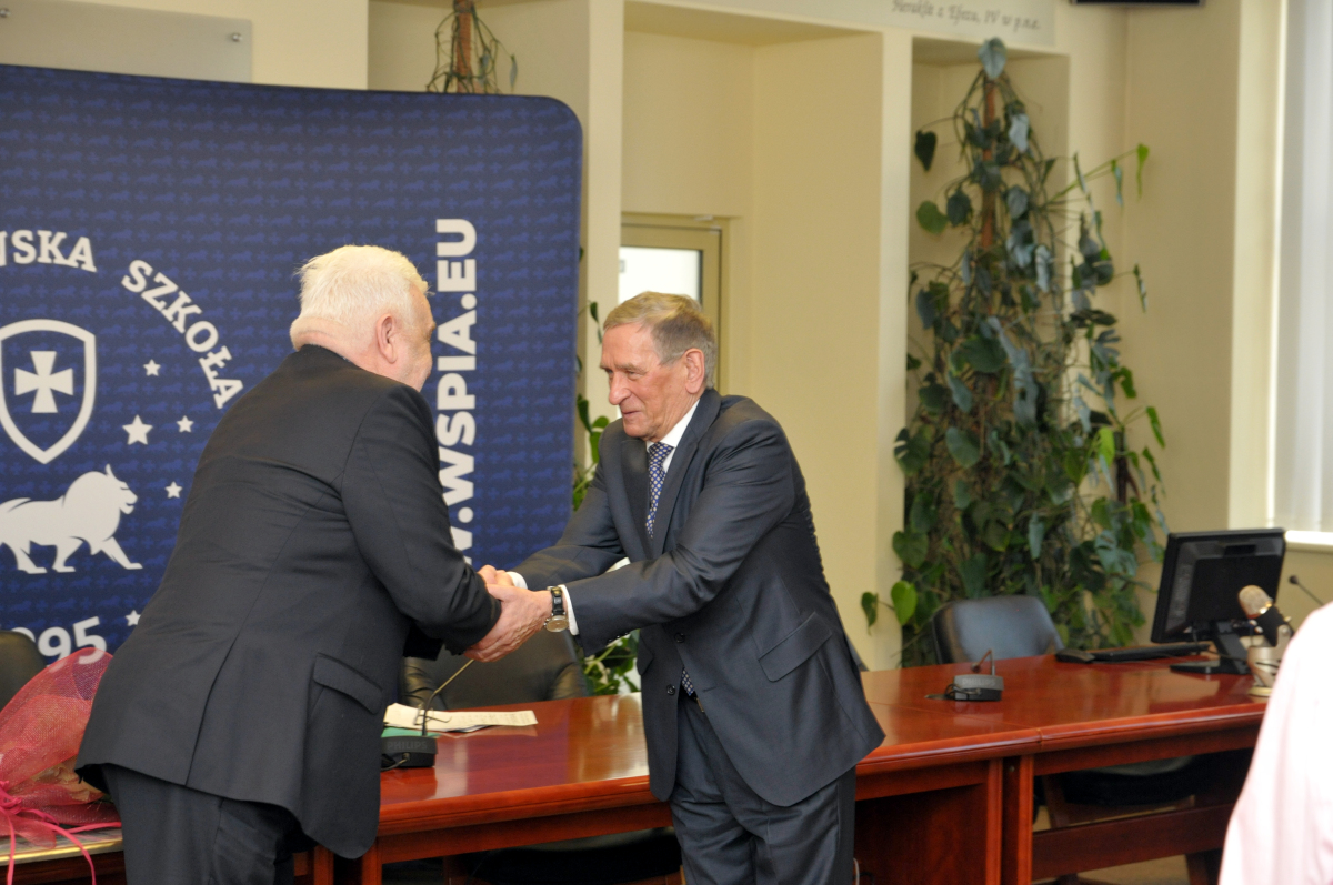 Na zakończenie spotkania Rektor WSPiA uroczyście podziękował prof. Kazimierzowi Jaremczukowi, który odchodzi na emeryturę, za wieloletnią współpracę i ogromny wkład w rozwój Uczelni.