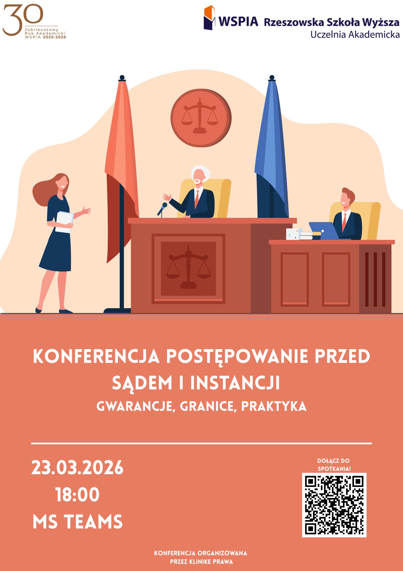 - 18:00 - Konferencja Naukowa "Postępowanie przed sądem I instancji – gwarancje, granice, praktyka", organizowana przez Klinikę Prawa WSPiA. Forma online.