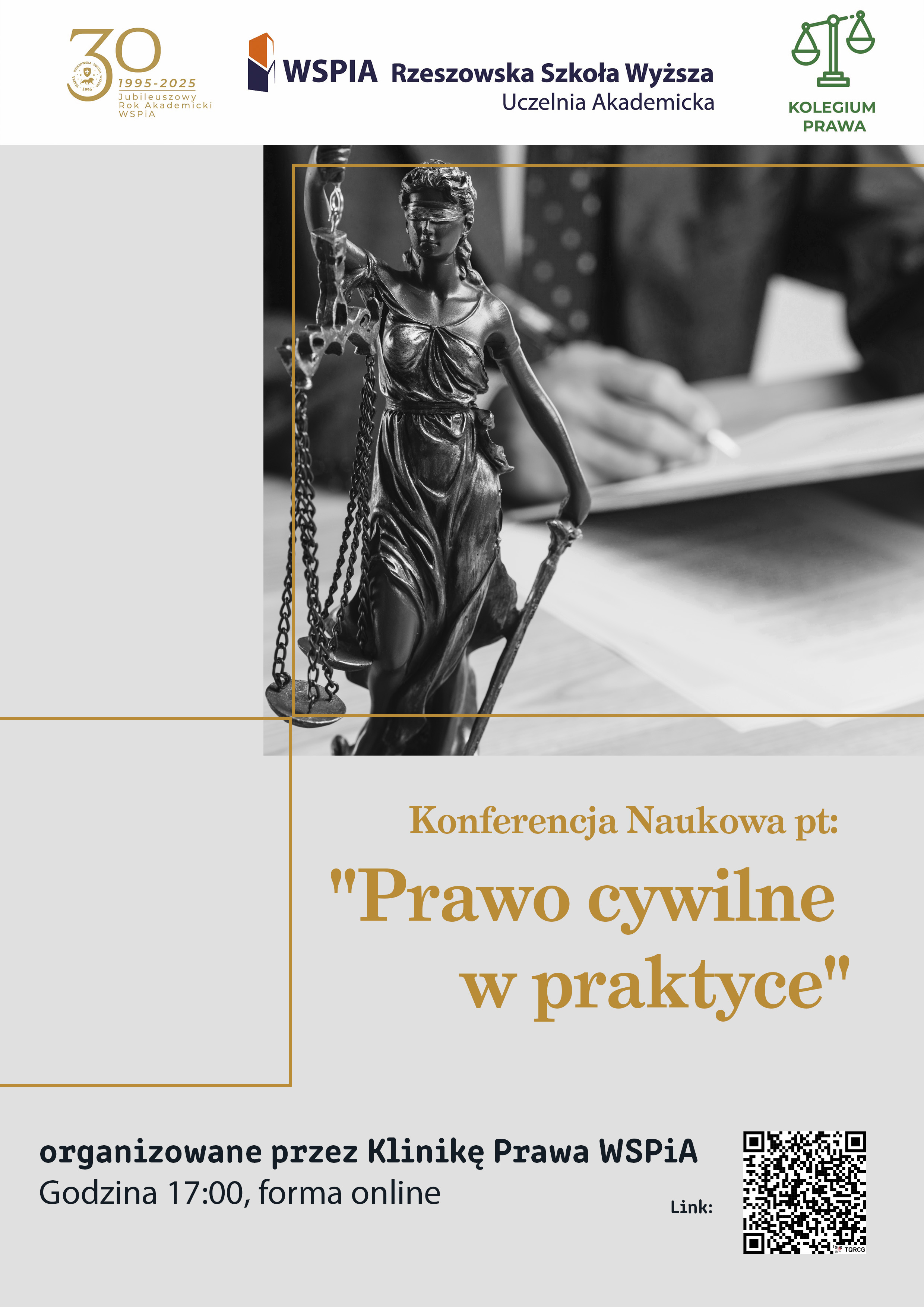 17:00 – Konferencja naukowa „Prawo cywilne w praktyce”, organizowana przez Klinikę Prawa WSPiA – forma online.