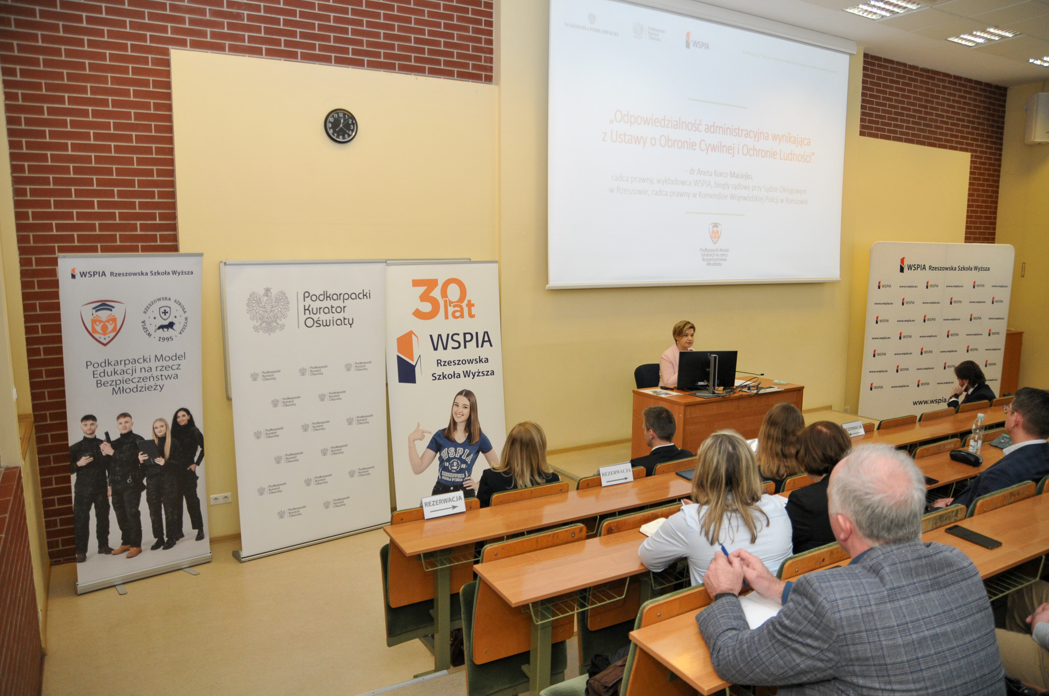 Blisko 300 dyrektorów szkół podstawowych i samorządowcy spotkało się w WSPiA Rzeszowskiej Szkole Wyższej, aby rozmawiać o nowych obowiązkach wynikających z ustawy o ochronie ludności i obronie cywilnej. Szkolenie pt. „Szkoła miejscem dbałości o bezpieczeństwo własne i innych” zorganizowane zostało przez Wojewodę Podkarpackiego, Podkarpackie Kuratorium Oświaty oraz WSPiA Rzeszowską Szkołę Wyższą w ramach Podkarpackiego Modelu Edukacji na rzecz Bezpieczeństwa Młodzieży.