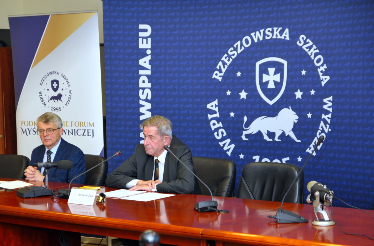 "Trybunał Konstytucyjny - teraźniejszość i przyszłość" tematem ostatniego w tym roku Podkarpackiego Forum Myśli Prawniczej. Gościem wydarzenia był prof. Andrzej Zoll, wykładowca WSPiA Rzeszowskiej Szkoły Wyższej, wybitny konstytucjonalista, sędzia, były Prezes Trybunału Konstytucyjnego i były rzecznik praw obywatelskich, który w swoim wystąpieniu przedstawił pogłębioną analizę funkcjonowania Trybunału - od momentu jego powstania w latach 80., przez okres transformacji ustrojowej, aż po aktualne wyzwania ustrojowe i prawne.