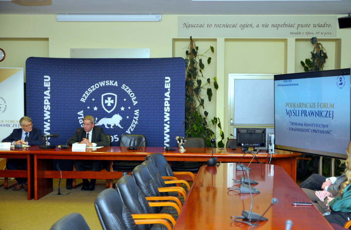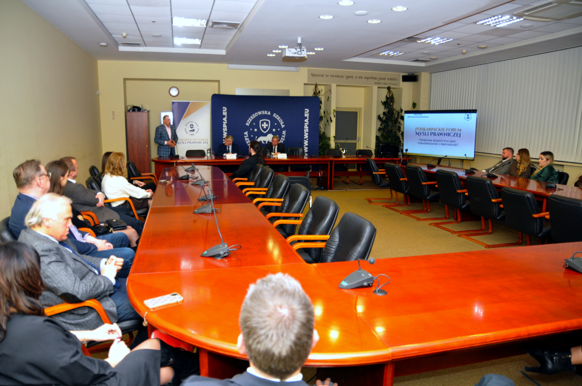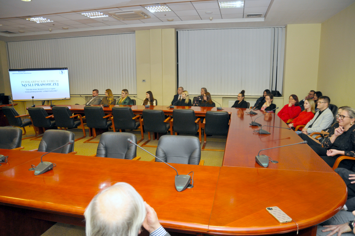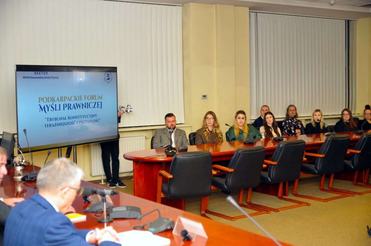 15 grudnia 2025 roku w WSPiA Rzeszowskiej Szkole Wyższej odbyło się kolejne spotkanie z cyklu Podkarpackiego Forum Myśli Prawniczej, tym razem poświęcone jednemu z kluczowych zagadnień współczesnego konstytucjonalizmu - kondycji i przyszłości Trybunału Konstytucyjnego w Polsce.