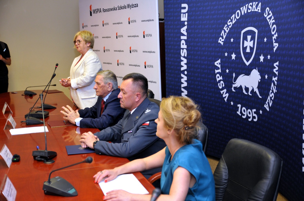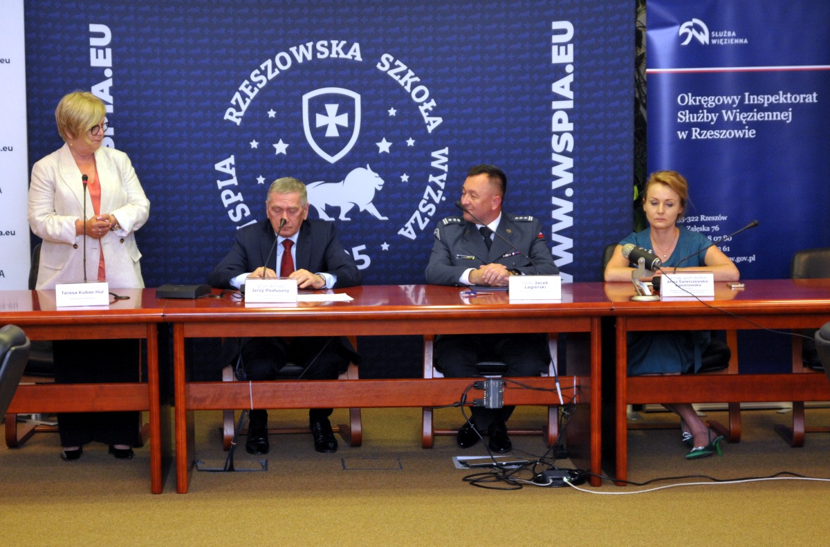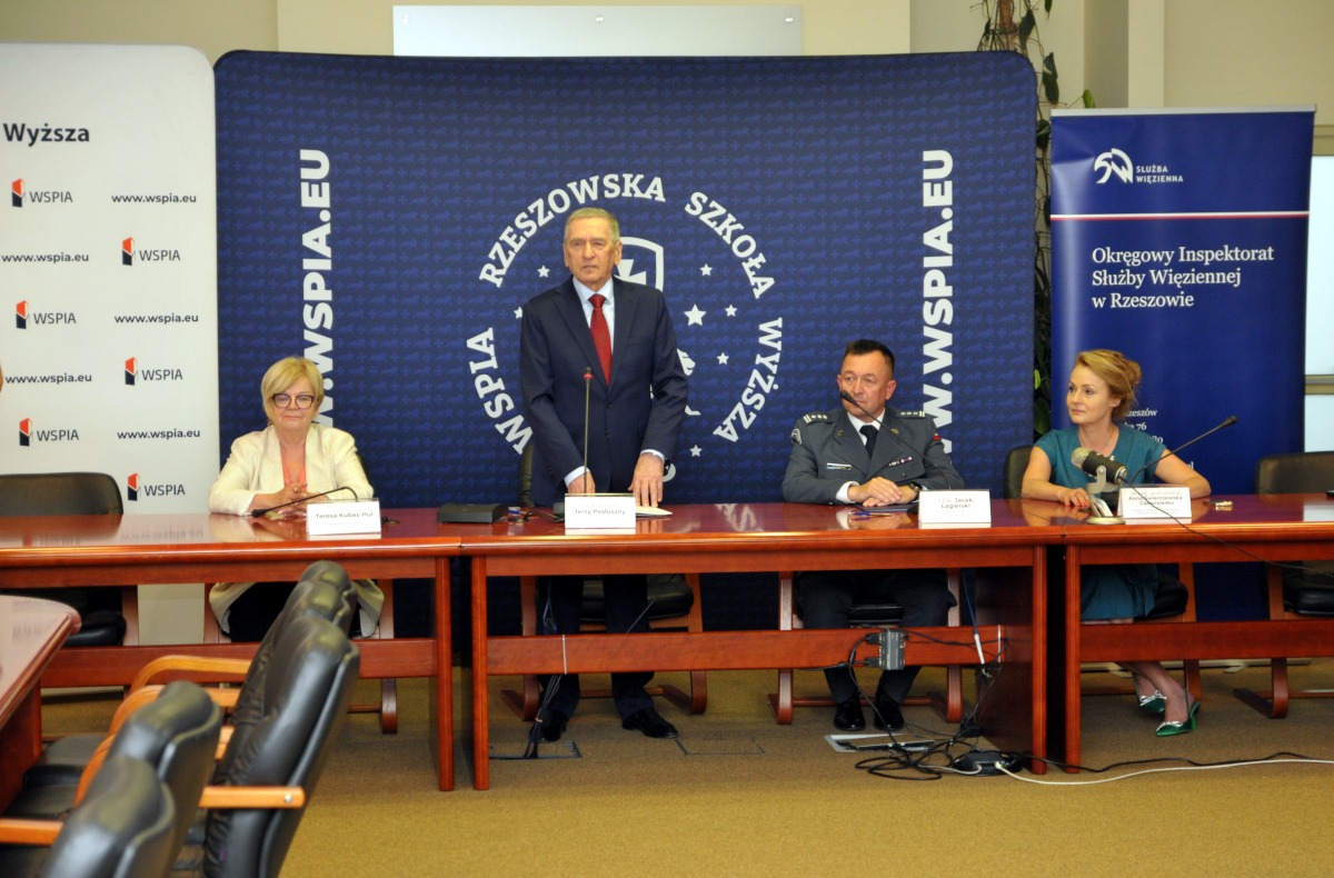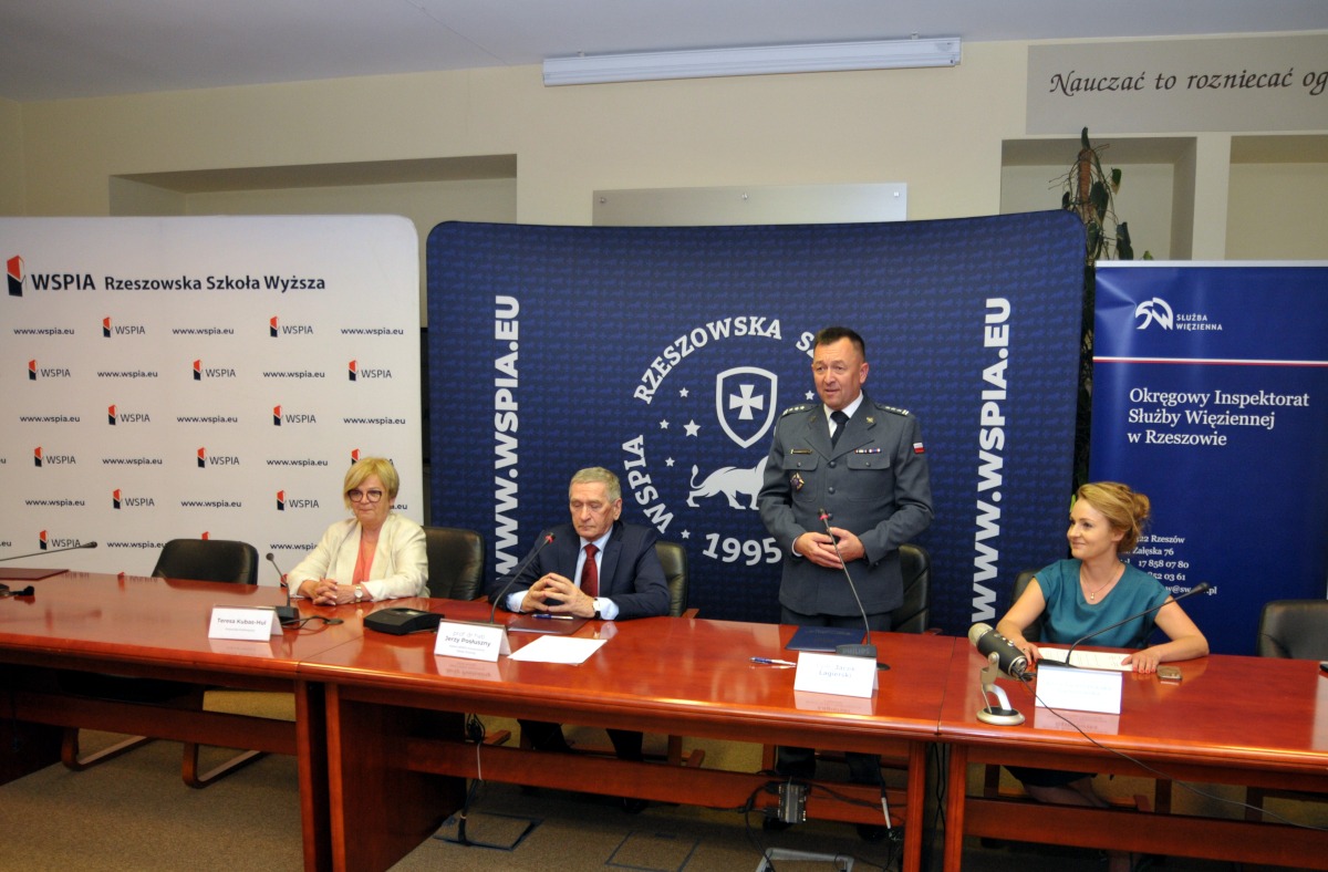 W uroczystości podpisania porozumienia pomiędzy WSPiA Rzeszowską Szkołą Wyższą a Okręgowym Inspektoratem Służby Więziennej podczas posiedzenia Senatu Uczelni uczestniczyli Pani Teresa Kubas-Hul, Wojewoda Podkarpacki; prof. Jerzy Posłuszny, Rektor WSPiA oraz płk Jacek Lagierski, Dyrektor Okręgowy Służby Więziennej w Rzeszowie oraz studenci, pracownicy WSPiA i funkcjonariusze SW.