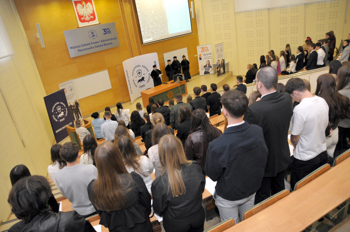 – Mam zaszczyt i przyjemność powitać Państwa w murach WSPiA Rzeszowskiej Szkoły Wyższej. Chcę na wstępie pogratulować wyboru – najlepszego z możliwych – uczelni, która przez najbliższe lata będzie dla Państwa miejscem zdobywania wiedzy, rozwijania kompetencji i kształtowania osobowości – powiedział do nowych studentów prof. Jerzy Posłuszny.