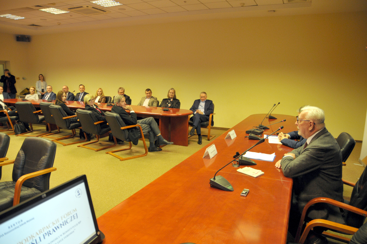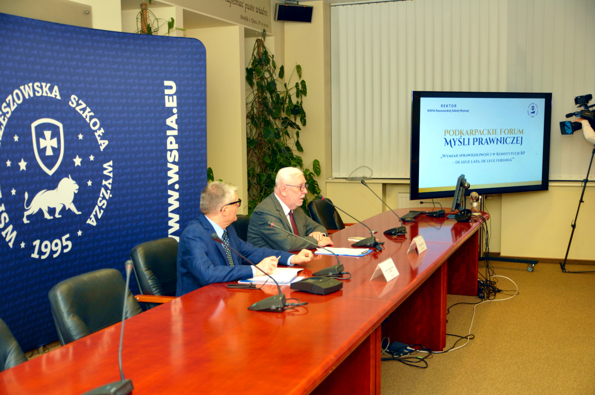 Podkarpackie Forum Myśli Prawniczej jest jedną z form misji i aktywności WSPiA Rzeszowskiej Szkoły Wyższej na rzecz środowiska prawniczego Podkarpacia. Posiedzenia Forum poświęcone są przede wszystkim podejmowaniu i omawianiu aktualnych i ważnych zagadnień dotyczących stanowienia i stosowania prawa. W posiedzeniach Forum uczestniczą wybitni przedstawiciele polskiej nauki prawa z różnych ośrodków akademickich, osoby reprezentujące sądownictwo, prokuraturę i korporacje prawnicze, a także nauczyciele akademiccy i doktoranci WSPiA. Posiedzenia są płaszczyzną i okazją do dyskusji, wymiany poglądów i wyrażania opinii dotyczących omawianych problemów.